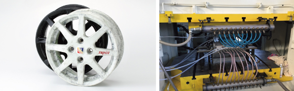 「世界初、熱可塑性複合材(CFRTP)プレス一発成形でホイールを実現」